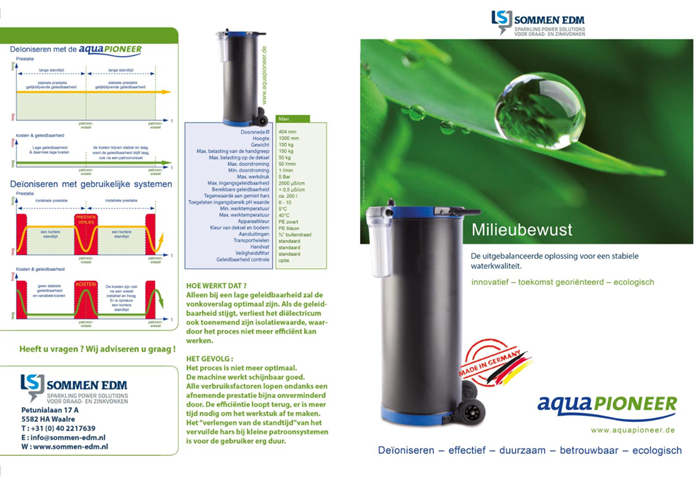 De AquaPioneer is een geavanceerde watertechnologie-oplossing die speciaal is ontworpen om de kwaliteit van het water tijdens het draadvonken, drastisch te verbeteren. Het apparaat fungeert als een all-in-one deionisatiesysteem dat zorgt voor een constant lage elektrische geleidbaarheid van het water, wat belangrijk is voor optimale bewerking, minder corrosie en een hogere oppervlaktekwaliteit van werkstukken. Door deze stabiele waterkwaliteit worden verborgen kosten, slijtage en uitval gereduceerd en wordt de efficiëntie van het productieproces verhoogd.